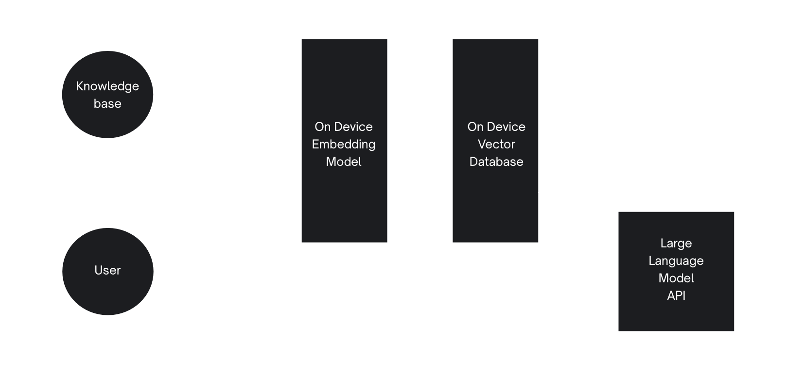 As the embedding models are significantly smaller, it is possible to have a hybrid model where the embedding model and vector database are on the user’s device, whereas the LLM is provided by a cloud API.