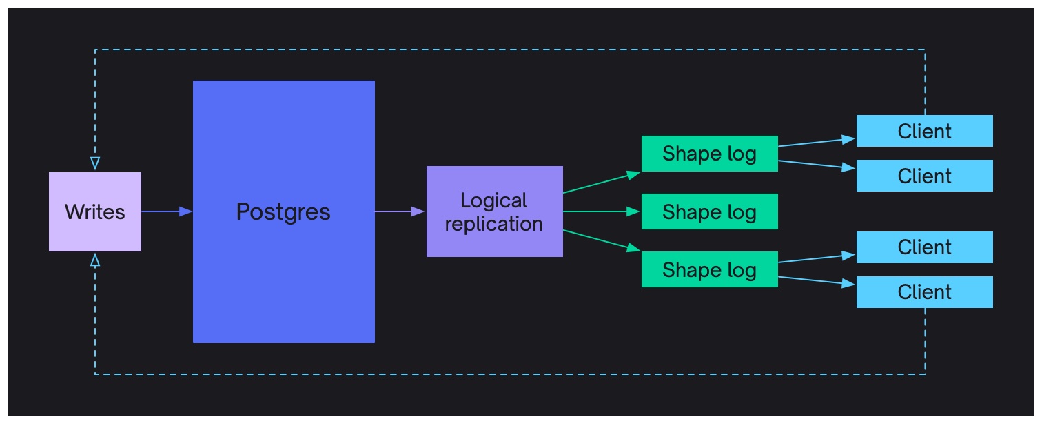 When a shape is first requested, Electric queries Postgres for the data and populates the log by turning the query results into insert operations. This allows you to sync shapes without having to pre-define them. Electric then streams out the log data in the response.